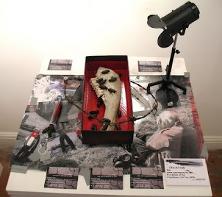 Many outside elements and ideas brought into the gallery space by the staff there are working to an arbitrarily postive effect. More on that later. But for now, the way in which the Grotesque Room aspect of the show came together at Cambridge Galleries is easily the best thing to happen to this year’s tour; a completely segregated room containing the Tattered…Boy display, dead crickets, jaw plinth, and the more ‘extreme’/meaty elements of the photographic work. A corrosive cell of modernity indeed;